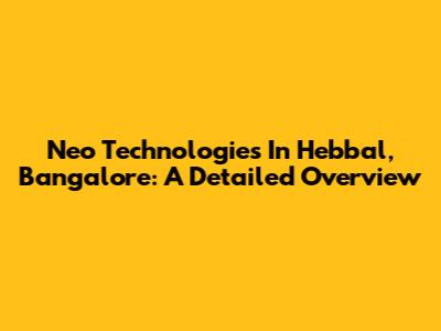 Neo Technologies In Hebbal, Bangalore: A Detailed Overview