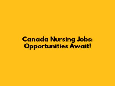 Canada Nursing Jobs: Opportunities Await!