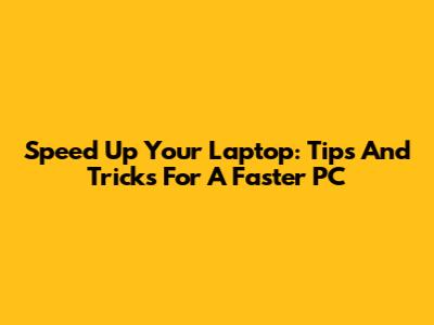 Speed Up Your Laptop: Tips And Tricks For A Faster PC
