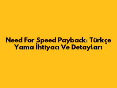 Need For Speed Payback: Türkçe Yama İhtiyacı Ve Detayları